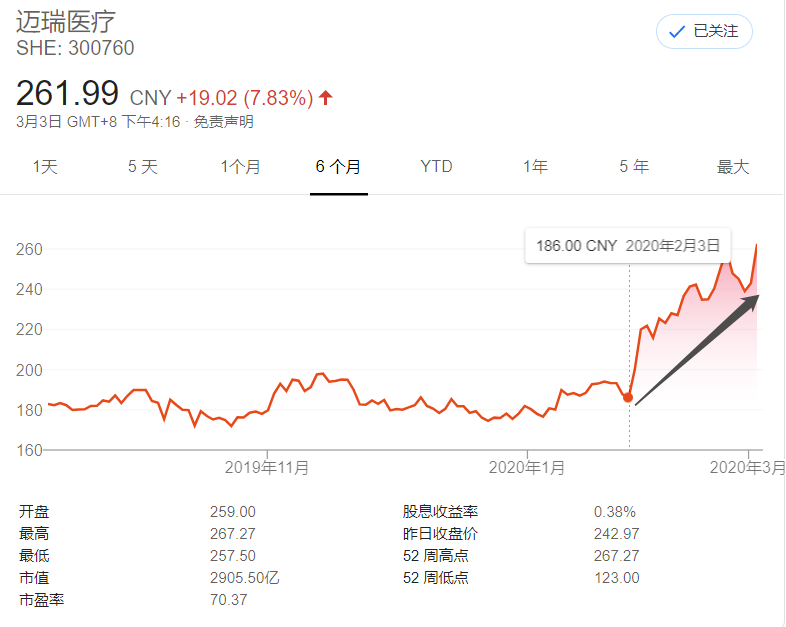 ▲邁瑞醫(yī)療股價變動