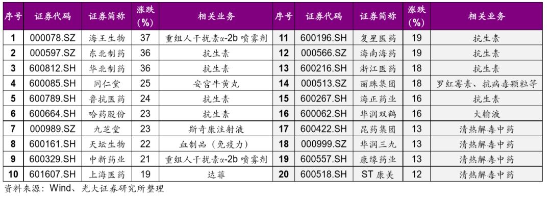 ▲SARS行情下,醫(yī)藥前20大漲幅標的均與抗疫有關(guān)(2002.12.15-2003.04.30)