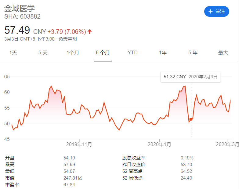 ▲金域醫(yī)學股價變動