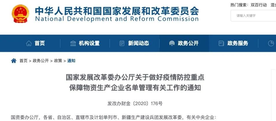 3月2日,發(fā)改委官網(wǎng)發(fā)布《國家發(fā)展改革委辦公廳關(guān)于做好疫情防控重點(diǎn)保障物資生產(chǎn)企業(yè)名單管理有關(guān)工作的通知》(以下簡稱《通知》),就納入名單管理的企業(yè)可以享受的稅收政策、企業(yè)申報(bào)要求、申報(bào)流程、名單管理等工作做出具體要求。