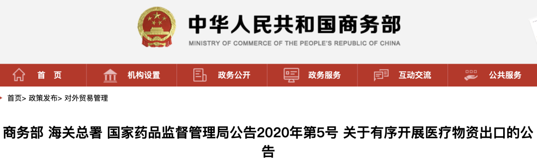 商務(wù)部指出,當(dāng)前,全球疫情呈加速擴散蔓延態(tài)勢。在做好自身疫情防控的基礎(chǔ)上,有序開展醫(yī)療物資出口是深化疫情防控國際合作、共同應(yīng)對全球公共衛(wèi)生危機的重要舉措。在疫情防控特殊時期,為有效支持全球抗擊疫情,保證產(chǎn)品質(zhì)量安全、規(guī)范出口秩序。