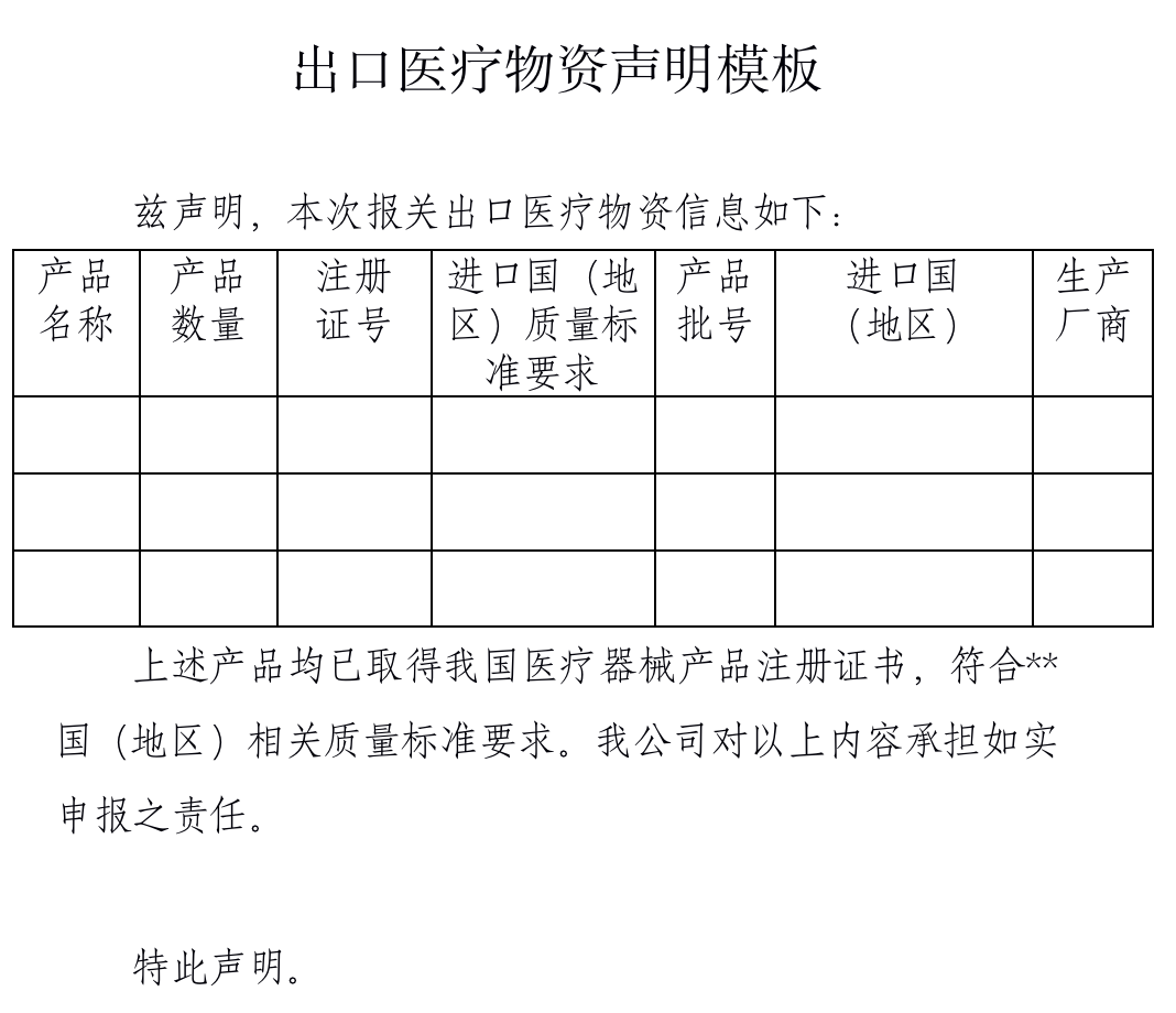 企業(yè)向海關(guān)報關(guān)時,須提供書面或電子聲明,承諾出口產(chǎn)品已取得我國醫(yī)療器械產(chǎn)品注冊證書,符合進口國(地區(qū))的質(zhì)量標(biāo)準(zhǔn)要求。