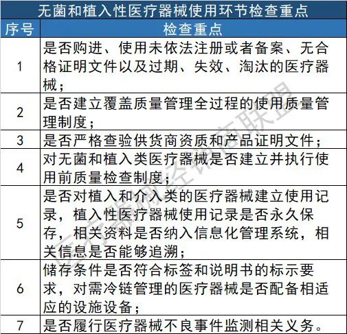 最后,在使用環(huán)節(jié)上,重點檢查《醫(yī)療器械監(jiān)督管理條例》《醫(yī)療器械使用質(zhì)量監(jiān)督管理辦法》《醫(yī)療器械不良事件監(jiān)測和再評價管理辦法》《醫(yī)療器械冷鏈(運輸)管理指南》等法規(guī)、規(guī)范、標(biāo)準(zhǔn)要求是否全面落實。