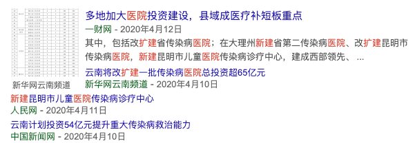 最近,又有許多省市公布了醫(yī)院新建/擴建的消息。4 月 10 日,云南省人民政府發(fā)布《云南省重大傳染病救治能力提升工程實施方案》,方案提出計劃投資 54.10 億元實施改建、擴建和新建傳染病醫(yī)院。