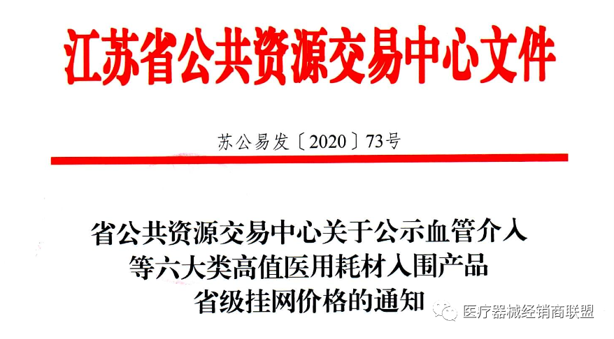 近日(5月15日),江蘇省公共資源交易中心最新發(fā)布了《關于公示血管介入等六大類高值醫(yī)用耗材入圍產品省級掛網價格的通知》(以下簡稱《通知》)。