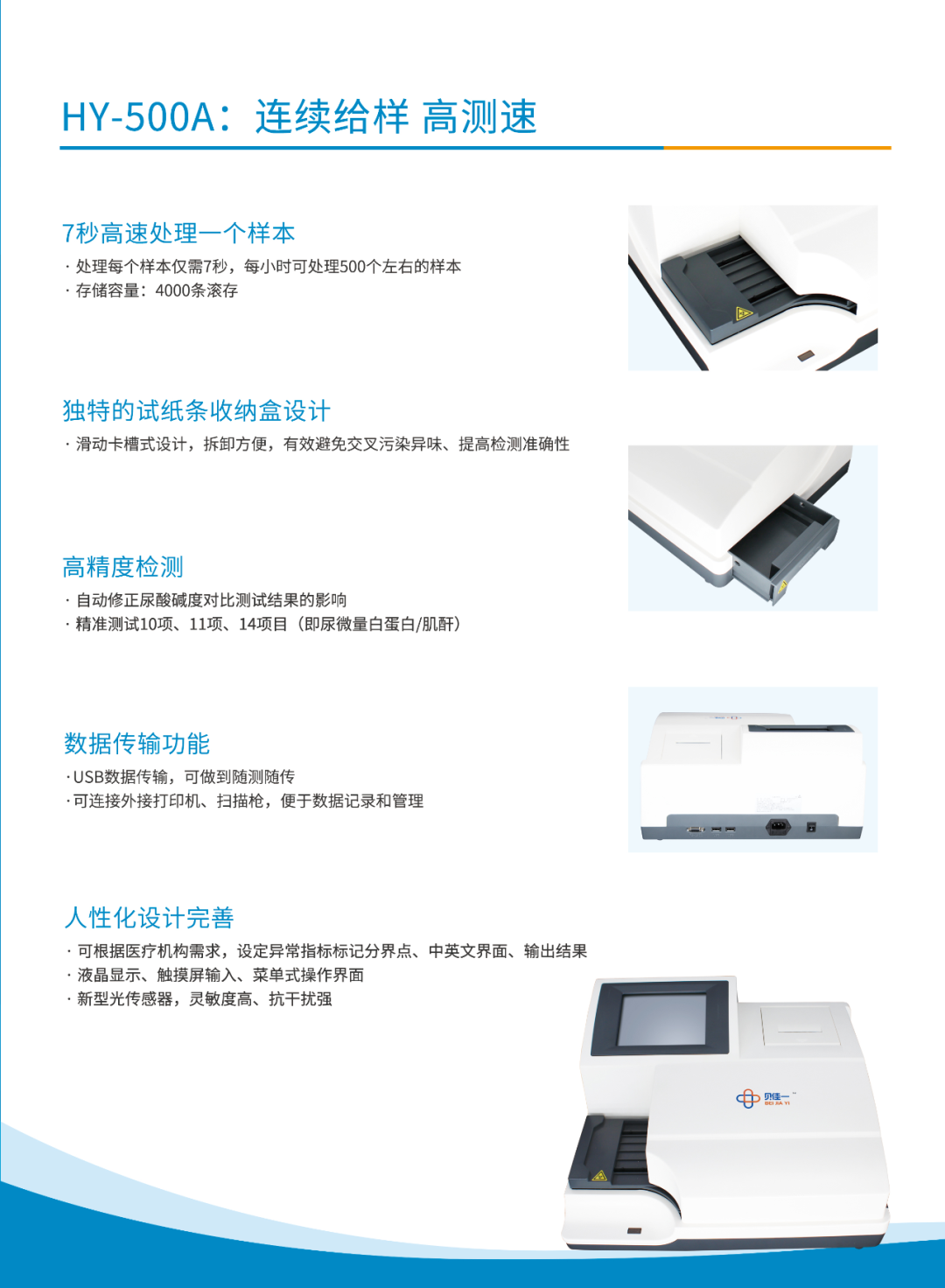 HY-500A型尿液分析儀,是國(guó)內(nèi)創(chuàng)新醫(yī)療器械品牌貝佳一聯(lián)合全球研發(fā)、生產(chǎn)實(shí)力企業(yè),圍繞臨床實(shí)際床實(shí)際應(yīng)用需求,匠心打造的一款高性價(jià)比、專業(yè)的半自動(dòng)尿液分析儀。