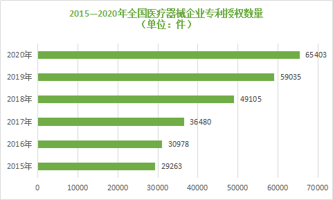 同時(shí),醫(yī)療器械產(chǎn)品的創(chuàng)新能力有了顯著的提高,2020年企業(yè)的專利授權(quán)達(dá)到65403件,同比增長(zhǎng)10.79%;進(jìn)入創(chuàng)新審批通道的產(chǎn)品有86件,同比增長(zhǎng)34.3%。