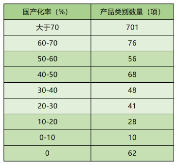 以二級(jí)產(chǎn)品類別的國(guó)產(chǎn)化為例,2020年,我國(guó)醫(yī)療器械國(guó)產(chǎn)化率達(dá)70%以上的產(chǎn)品類別超過(guò)700項(xiàng),國(guó)產(chǎn)化率為0的產(chǎn)品類別僅為62項(xiàng)。