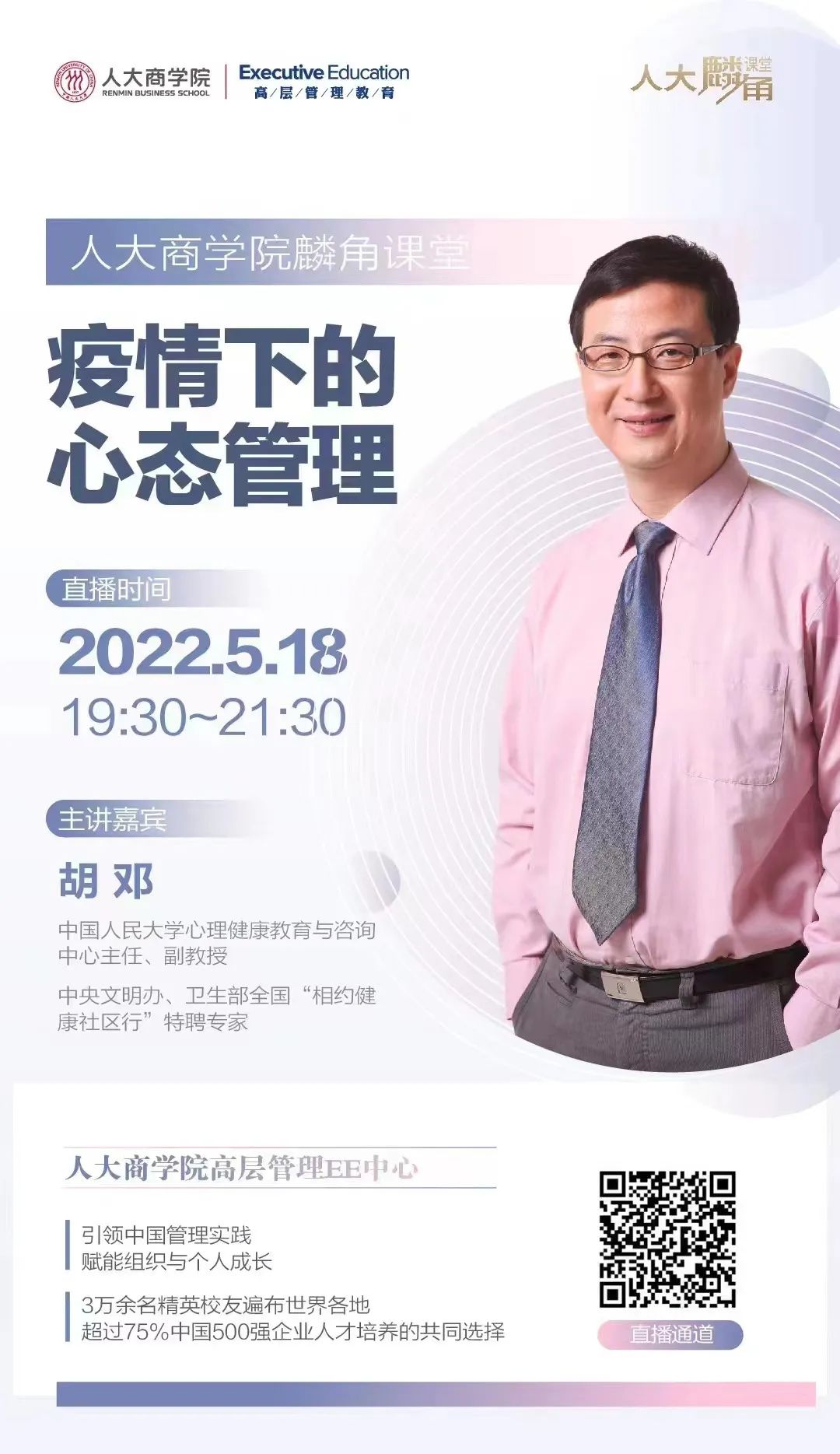 醫(yī)博會經(jīng)與人大商學院溝通,共同奉獻一場疫情下的心態(tài)管理課程直播,找到應(yīng)對危機的方法,共同擔當、共克時艱!