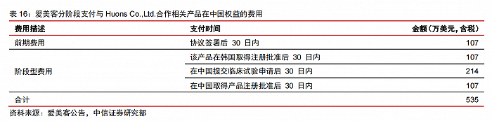 愛(ài)美客參股韓國(guó) Huons BioPharma Co.,Ltd 股權(quán),強(qiáng)化肉毒素戰(zhàn)略布局,拓展未來(lái)市場(chǎng)空間。2018 年 9 月,愛(ài)美客與韓國(guó) Huons Co.,Ltd.(控股公司為 Huons Global)簽 訂 A 型肉毒毒素產(chǎn)品在中國(guó)的合作協(xié)議。Huons Co.,Ltd.授權(quán)愛(ài)美客在中國(guó)區(qū)域內(nèi)進(jìn)口、注冊(cè)和經(jīng)銷(xiāo)其生產(chǎn)的 A 型肉毒毒素產(chǎn)品 100U(900KDa),愛(ài)美客將負(fù)責(zé)該產(chǎn)品在中國(guó)區(qū)域內(nèi)的臨床試驗(yàn)及注冊(cè)申請(qǐng)。注冊(cè)成功后,愛(ài)美客將獲得在中國(guó)境內(nèi)的該產(chǎn)品 10 年獨(dú)家經(jīng)銷(xiāo)權(quán)。根據(jù)雙方簽訂的《經(jīng)銷(xiāo)協(xié)議》和《經(jīng)銷(xiāo)協(xié)議修正案》,愛(ài)美客取得相關(guān)產(chǎn)品在中國(guó)權(quán)益的費(fèi)用合計(jì) 535 萬(wàn)美元,分階段支付。2021 年 7 月,愛(ài)美客使用超募資金約 8.86億元對(duì) Huons BioPharma Co.,Ltd(控股公司為 Huons Global,主營(yíng)肉毒素產(chǎn)品 Hutox)進(jìn)行增資并收購(gòu)部分股權(quán)。其中,約 5.81 億元增資認(rèn)購(gòu) Huons BioPharma Co.,Ltd 80 萬(wàn)股股份,約 3.05 億元收購(gòu) Huons Global 持有 Huons BioPharma Co.,Ltd 8.8%的股權(quán)計(jì)42 萬(wàn)股股份。經(jīng)過(guò)增資,愛(ài)美客合計(jì)持有 Huons BioPharma Co.,Ltd 122 萬(wàn)股股份,持股比例 25.4%,進(jìn)一步強(qiáng)化肉毒素產(chǎn)品的戰(zhàn)略布局。