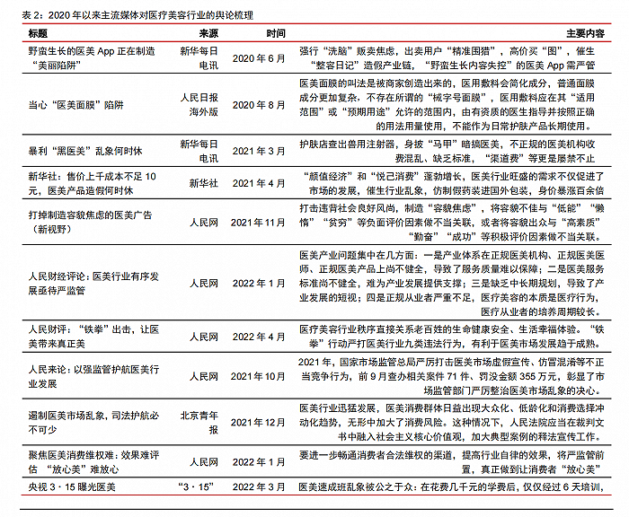 2022 年醫(yī)美行業(yè)進(jìn)入合規(guī)發(fā)展時(shí)代監(jiān)管力度升級(jí),針對(duì)醫(yī)美產(chǎn)品、機(jī)構(gòu)、營(yíng)銷(xiāo)宣傳渠道等全方位整頓2020 年以來(lái)針對(duì)醫(yī)美行業(yè)監(jiān)管整體加強(qiáng),2021 年 8 月開(kāi)始,監(jiān)管力度升級(jí),針對(duì)醫(yī)美產(chǎn)品、機(jī)構(gòu)、營(yíng)銷(xiāo)宣傳渠道等各環(huán)節(jié)實(shí)行了全方位整頓,對(duì)行業(yè)開(kāi)始形成實(shí)質(zhì)性較大影響,2022 年醫(yī)美行業(yè)邁入合規(guī)發(fā)展時(shí)代。Ø