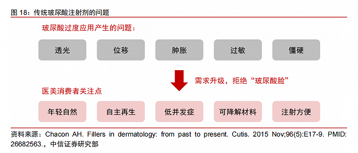 現(xiàn)行主流填充劑—玻尿酸存在透光、位移、腫脹、過(guò)敏及僵硬等問(wèn)題,不能滿(mǎn)足消費(fèi)者對(duì)高質(zhì)量醫(yī)美的需求。