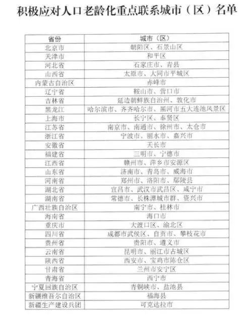 近日,國(guó)家發(fā)展和改革委員會(huì)辦公廳、民政部辦公廳、國(guó)家衛(wèi)生健康委員會(huì)聯(lián)合印發(fā)《關(guān)于做好積極應(yīng)對(duì)人口老齡化重點(diǎn)聯(lián)系城市有關(guān)工作的通知》,確定61個(gè)積極應(yīng)對(duì)人口老齡化重點(diǎn)聯(lián)系城市。這其中,山東有3地入選,分別是濟(jì)南、青島和威海。