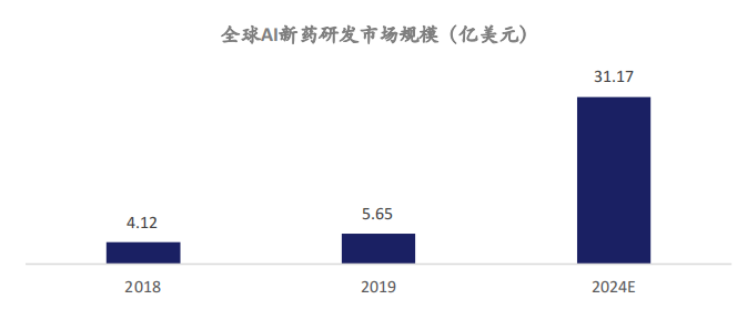 當(dāng)前,AI 制藥已經(jīng)實現(xiàn)了對傳統(tǒng)研究流程的部分替代,在靶點(diǎn)發(fā)現(xiàn)、先導(dǎo)化合物篩選及優(yōu)化、化合物合成、晶型預(yù)測等多個環(huán)節(jié)成功應(yīng)用,并已推動多款藥物進(jìn)入臨床研究階段。根據(jù) Grand View Research 研究,全球 AI 新藥研發(fā)將在 2024 年達(dá)到 31.17 億美元,年化復(fù)合增長率為 40.7%。