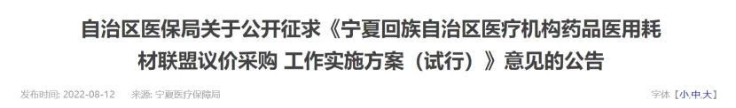 8月12日,寧夏醫(yī)保局發(fā)布《關(guān)于公開征求<寧夏回族自治區(qū)醫(yī)療機(jī)構(gòu)藥品醫(yī)用耗材聯(lián)盟議價(jià)采購工作實(shí)施方案(試行)>意見的公告》,嚴(yán)格貨款結(jié)算。