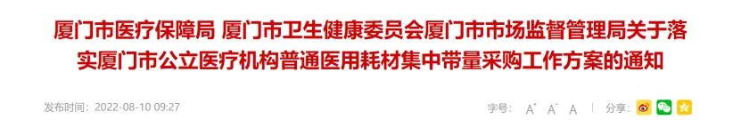 就在兩天前,廈門醫(yī)保局發(fā)布《關(guān)于落實(shí)廈門市公立醫(yī)療機(jī)構(gòu)普通醫(yī)用耗材集中帶量采購工作方案的通知》,將 按照國家、省組織藥械集中帶量采購和使用工作要求,開展普通醫(yī)用耗材集中帶量采購和使用。