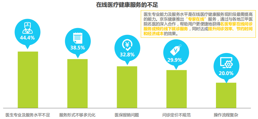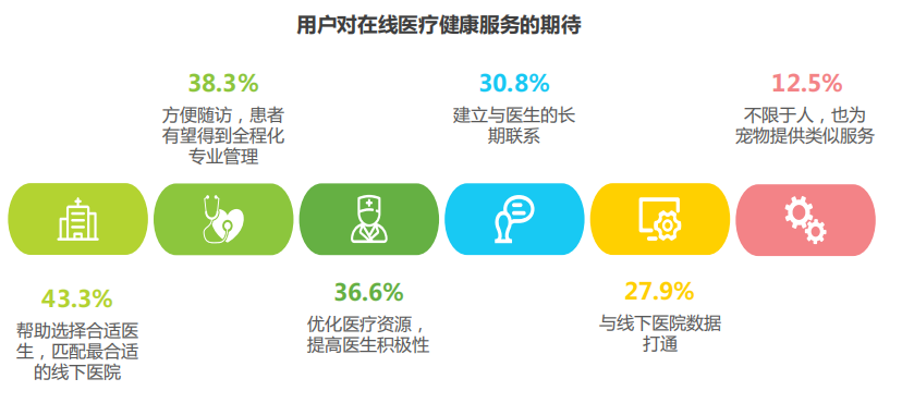 在線(xiàn)服務(wù)結(jié)果的準(zhǔn)確性、支付和報(bào)銷(xiāo)困難、現(xiàn)有技術(shù)法規(guī)不成熟等,都是阻礙用戶(hù)接受在線(xiàn)醫(yī)療健康服務(wù)的原因。便捷、高效、專(zhuān)業(yè)等是用戶(hù)集中關(guān)注的因素,精確的需求匹配、完整的隨訪(fǎng)的體系等都是亟需解決的需求,形成全程化的專(zhuān)業(yè)醫(yī)療健康管理服務(wù),對(duì)用戶(hù)的全生命周期進(jìn)行管理和服務(wù),這是在線(xiàn)醫(yī)療健康服務(wù)未來(lái)重要的發(fā)展趨勢(shì)。