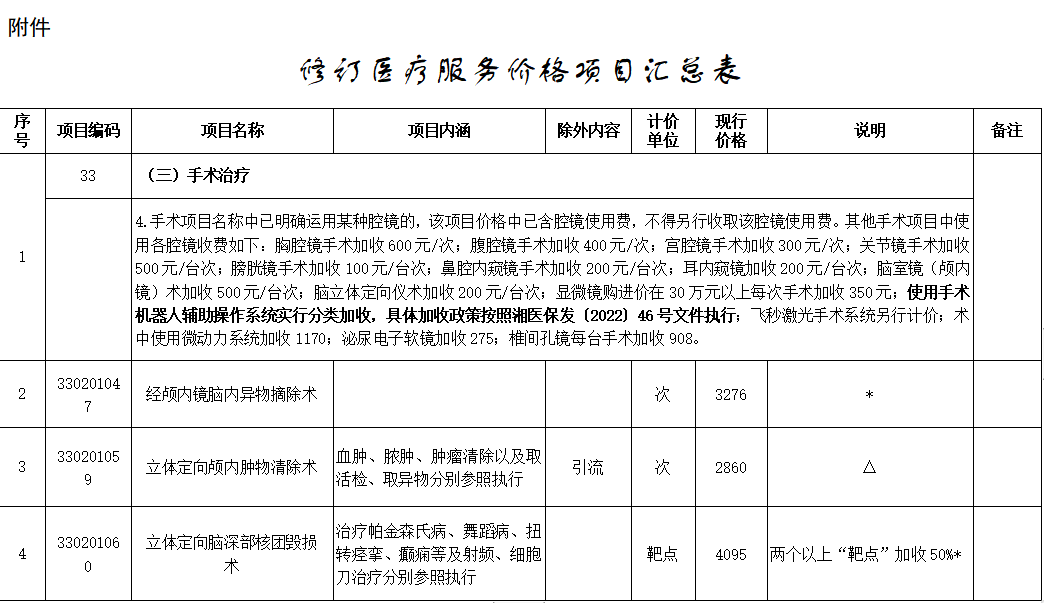 修訂醫(yī)療服務價格項目匯總表