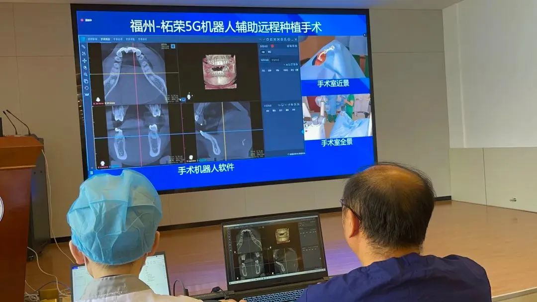 近日,福建醫(yī)科大學附屬口腔醫(yī)院種植科陳江教授團隊完成了一例“隔空種牙”手術(shù)。 來自寧德柘榮縣的袁先生在5個月前,在牙科診所拔除了右上后牙,由于咬合不便,他來到柘榮縣醫(yī)院口腔科尋求種植修復。 然而,受制于醫(yī)療條件,當?shù)蒯t(yī)院無法獨立完成種植手術(shù),必須到省級??漆t(yī)院就診。 但是,從柘榮到福州,185公里,路途來回奔波不及,加上工作繁忙,袁先生無法到福州就醫(yī)。 幸得,柘榮縣醫(yī)院口腔科系福建醫(yī)科大學附屬口腔醫(yī)院長期合作的幫扶試點科室,借助5G網(wǎng)絡(luò)技術(shù)和口腔種植機器人系統(tǒng),進行“福州—柘榮5G機器人遠程種植牙手術(shù)”。
