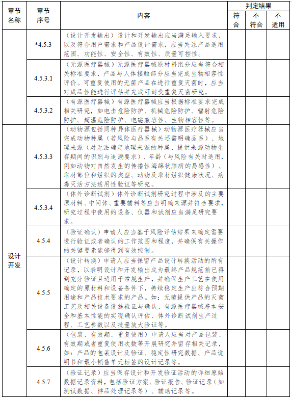 4.5.3(設(shè)計(jì)開發(fā)輸出) 設(shè)計(jì)和開發(fā)輸出應(yīng)當(dāng)滿足輸入要求,以及符合用戶需求和產(chǎn)品設(shè)計(jì)需求,應(yīng)當(dāng)關(guān)注產(chǎn)品適用范圍、功能性、安全性、有效性、質(zhì)量可控性。