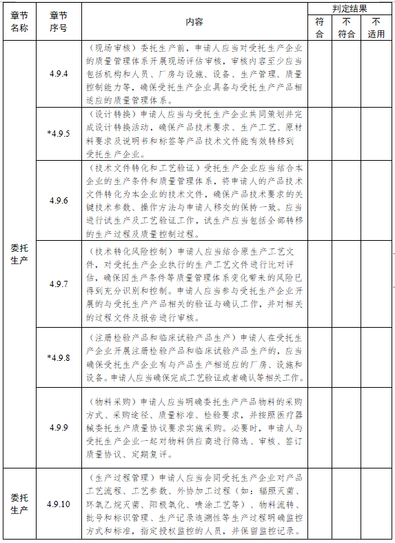 4.9.1(總體要求) 在生產(chǎn)產(chǎn)品過程中存在委托情形的,申請(qǐng)人應(yīng)當(dāng)明確負(fù)責(zé)指導(dǎo)、監(jiān)督受托生產(chǎn)企業(yè)質(zhì)量管理體系的部門和人員。原則上應(yīng)當(dāng)指定管理者代表負(fù)責(zé)委托生產(chǎn)的質(zhì)量管理。