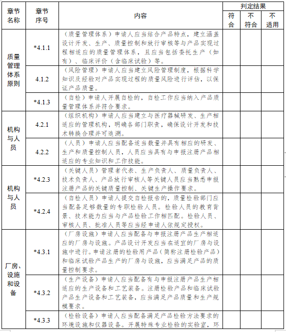 3.3(自檢核查要求) 對(duì)提交自檢報(bào)告的,應(yīng)當(dāng)按照《醫(yī)療器械注冊(cè)自檢管理規(guī)定》,結(jié)合提交的產(chǎn)品技術(shù)要求,對(duì)申請(qǐng)人的質(zhì)量管理體系和能力逐項(xiàng)進(jìn)行核實(shí)。