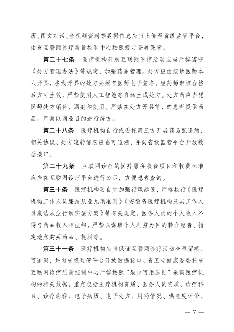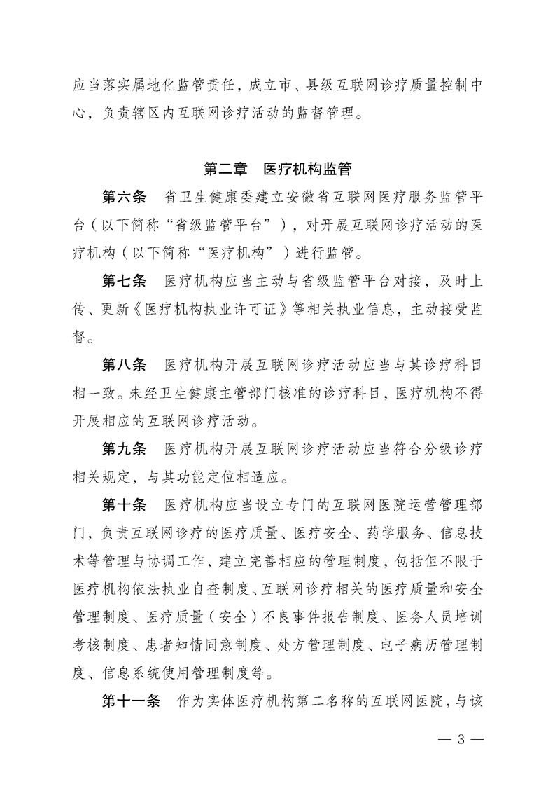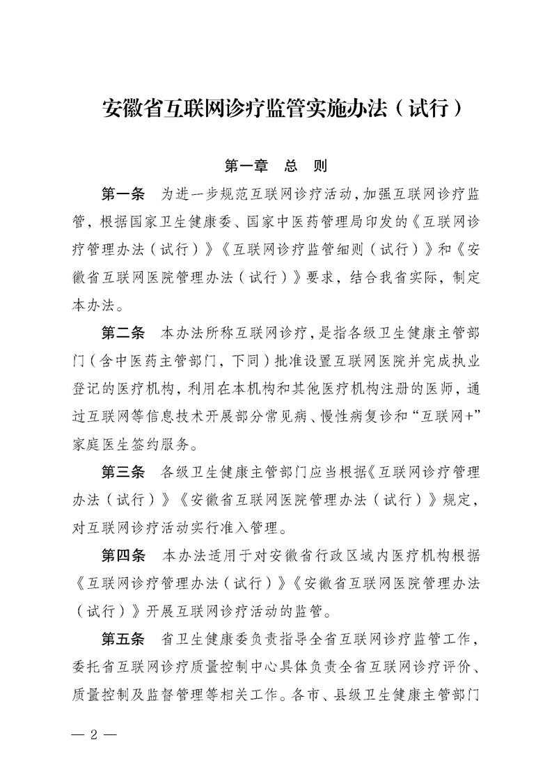 近日,安徽省衛(wèi)生健康委印發(fā)《安徽省互聯(lián)網(wǎng)診療監(jiān)管實(shí)施辦法(試行)》(以下簡(jiǎn)稱《實(shí)施辦法》)。其中明確,省衛(wèi)生健康委建立安徽省互聯(lián)網(wǎng)醫(yī)療服務(wù)監(jiān)管平臺(tái)(以下簡(jiǎn)稱“省級(jí)監(jiān)管平臺(tái)”),對(duì)開展互聯(lián)網(wǎng)診療活動(dòng)的醫(yī)療機(jī)構(gòu)(以下簡(jiǎn)稱“醫(yī)療機(jī)構(gòu)”)進(jìn)行監(jiān)管。