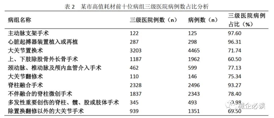 2.高值耗材的使用主要集中于當(dāng)?shù)蒯t(yī)療水平較高的三級醫(yī)院(見表2),高值耗材病例的虧損直接影響相關(guān)醫(yī)院對DRGs支付方式的配合。
