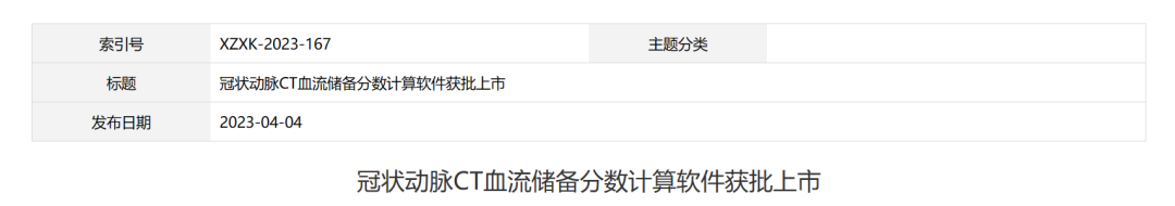 國家藥品監(jiān)督管理局批準了上海博動醫(yī)療科技有限公司生產(chǎn)的“冠狀動脈CT血流儲備分數(shù)計算軟件”創(chuàng)新產(chǎn)品注冊申請。