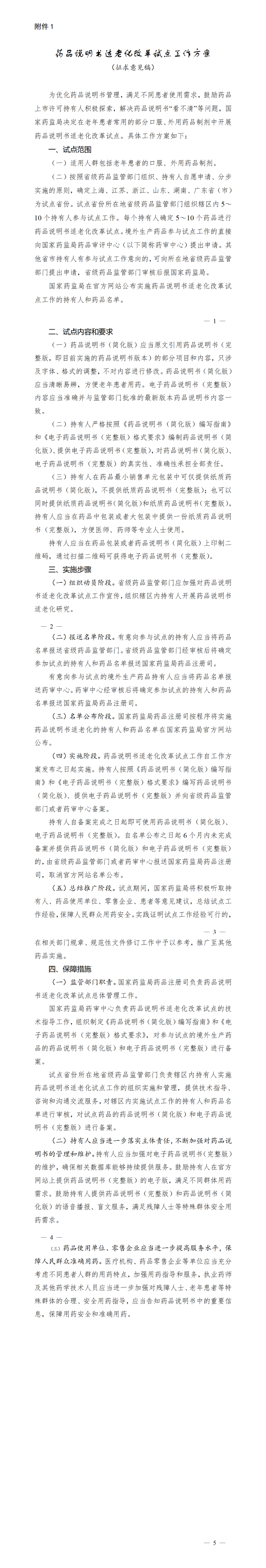 附件:1.藥品說明書適老化改革試點(diǎn)工作方案(征求意見稿)