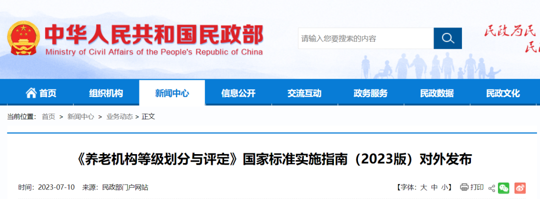 為貫徹落實(shí)《“十四五”國(guó)家老齡事業(yè)發(fā)展和養(yǎng)老服務(wù)體系規(guī)劃》有關(guān)要求,指導(dǎo)各地民政部門更好落實(shí)《民政部關(guān)于加快建立全國(guó)統(tǒng)一養(yǎng)老機(jī)構(gòu)等級(jí)評(píng)定體系的指導(dǎo)意見(jiàn)》,實(shí)施好《養(yǎng)老機(jī)構(gòu)等級(jí)劃分與評(píng)定》國(guó)家標(biāo)準(zhǔn),近日,民政部社會(huì)福利中心、全國(guó)社會(huì)福利服務(wù)標(biāo)準(zhǔn)化技術(shù)委員會(huì)聯(lián)合發(fā)布《<養(yǎng)老機(jī)構(gòu)等級(jí)劃分與評(píng)定>國(guó)家標(biāo)準(zhǔn)實(shí)施指南(2023版)》,供地方開(kāi)展養(yǎng)老機(jī)構(gòu)等級(jí)評(píng)定工作時(shí)參考使用。
