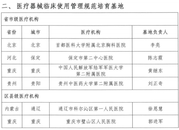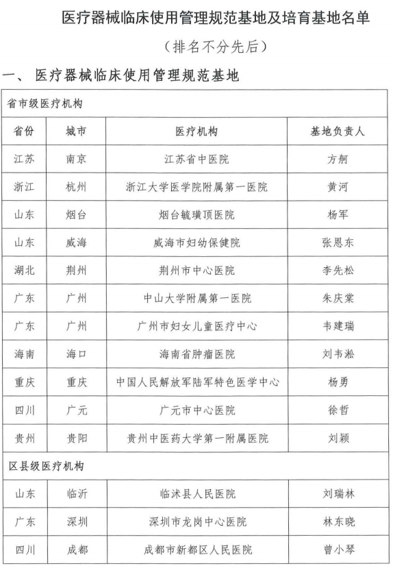 關(guān)于醫(yī)療器械臨床使用管理規(guī)范基地及培育基地名單公示的通知