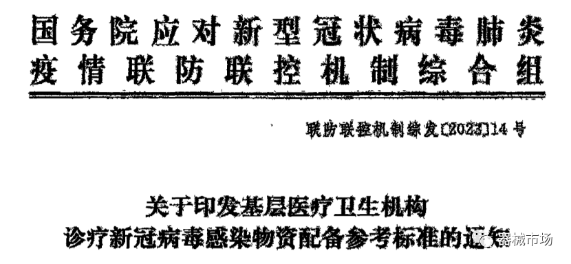 結合基層醫(yī)療衛(wèi)生機構診療新冠病毒感染物資配備參考標準。