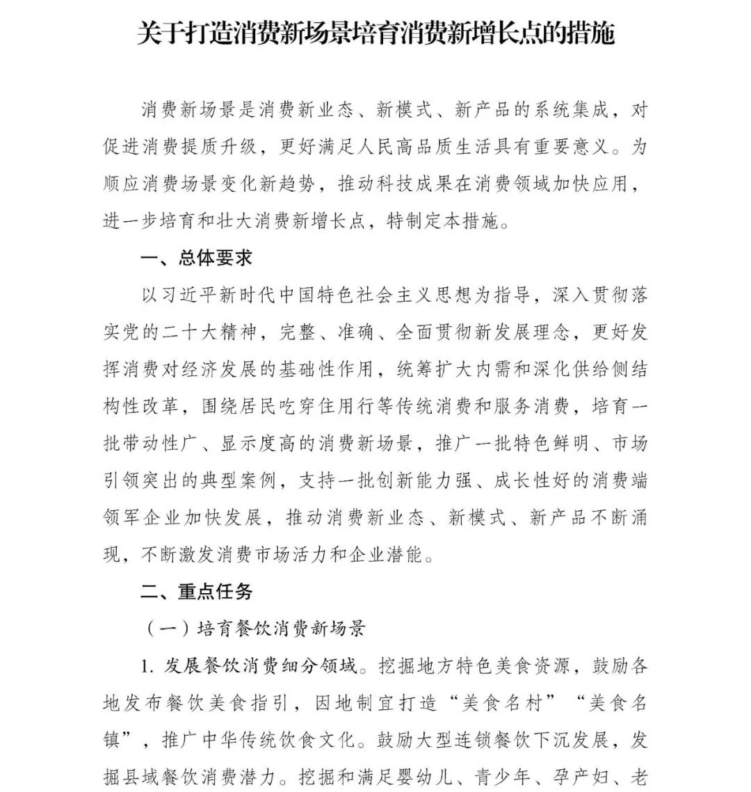 近日,國家發(fā)改委、商務(wù)部等5部門聯(lián)合印發(fā)《關(guān)于打造消費(fèi)新場(chǎng)景培育消費(fèi)新增長(zhǎng)點(diǎn)的措施》(簡(jiǎn)稱《措施》,完整附文末)。