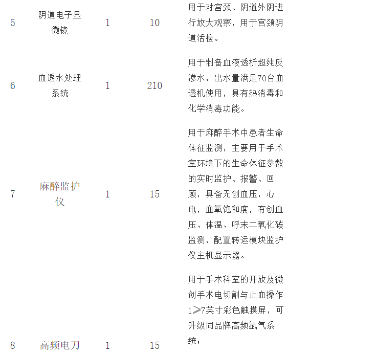 其中,醫(yī)學(xué)影像設(shè)備65臺(套),醫(yī)學(xué)檢驗(yàn)設(shè)備78臺(套),病房、手術(shù)室設(shè)備78臺(套),急救設(shè)備9臺(套),中醫(yī)、康復(fù)治療設(shè)備6臺(套),其他醫(yī)療設(shè)備10臺(套),信息化設(shè)備及軟件服務(wù)5臺(套)。