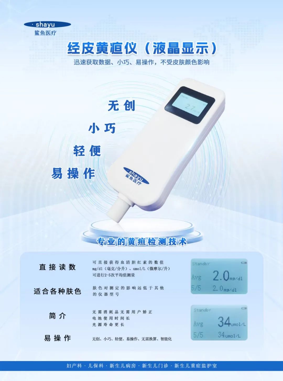山東鯊魚醫(yī)療公司位于山東濟南,是國家級高新技術(shù)企業(yè),公司擁有醫(yī)療器械生產(chǎn)基地和醫(yī)療耗材GMP車間生產(chǎn)基地,主要從事高端醫(yī)療設(shè)備和醫(yī)療耗材的研發(fā)生產(chǎn)及銷售,公司醫(yī)療器械產(chǎn)品以體檢設(shè)備為主,目前上市銷售的主要醫(yī)療器械產(chǎn)品有:內(nèi)臟脂肪檢測儀、血管內(nèi)皮功能檢測儀、心率變異性檢測儀、動脈硬化檢測儀、超聲骨密度分析儀、經(jīng)皮黃疸檢測儀、人體成分分析儀、音樂中頻治療儀、嬰幼兒無菌防護眼罩等,是政府重點支持的上市培育企業(yè)。