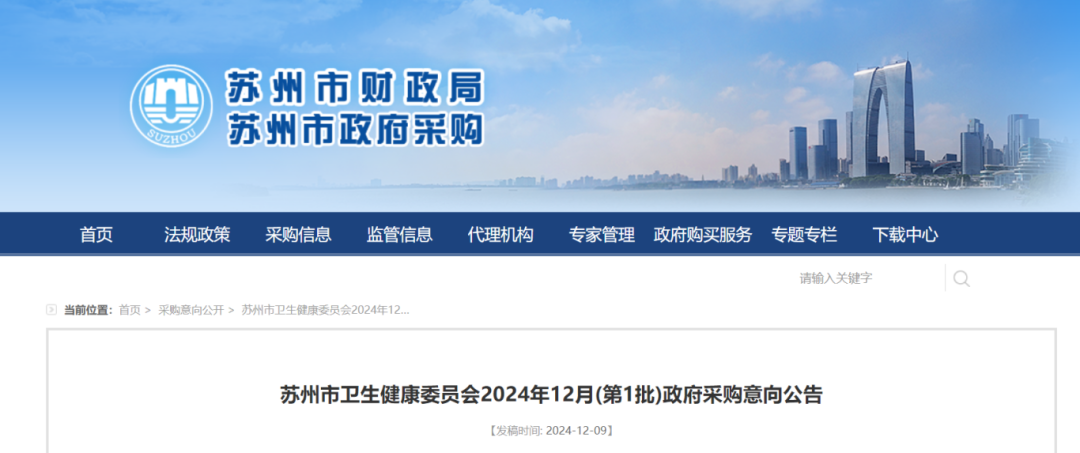 同年12月,蘇州市政府采購網(wǎng)緊接著發(fā)布了《蘇州市2024年公立醫(yī)療機構(gòu)醫(yī)療設(shè)備集中采購(第二批)》的政府采購意向公告,預(yù)計于2025年1月,再次集中采購一批醫(yī)療設(shè)備。