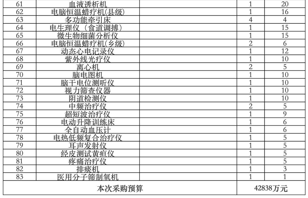 同一日,甘肅省衛(wèi)健委也發(fā)布了《甘肅省縣域醫(yī)共體醫(yī)療設(shè)備更新項目采購需求調(diào)查征集公告》,預(yù)算金額高達(dá)4.28億元。